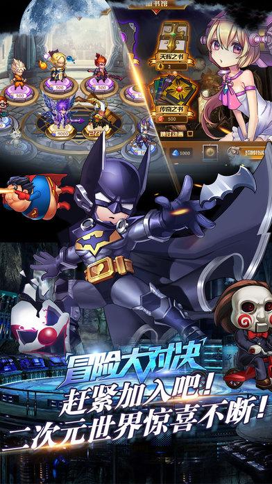 《冒险大对决》为8090后那些怀旧经典动漫而诞生的一款泛二次元动漫类手游。轻松挂机收益满满,超人气组合超萌对抗还有酷炫华丽的技能特效,游戏讲得是一个月高风黑的夜晚,平凡的少年,说的就是你!和梦中的女神宿命般的相遇,就此拉开一场现实世界与二次元世界的战役。在二次元世界冒险的少年,通过自己与宿命的融合,迸发天赋,一路碾压战五渣们,拯救世界。